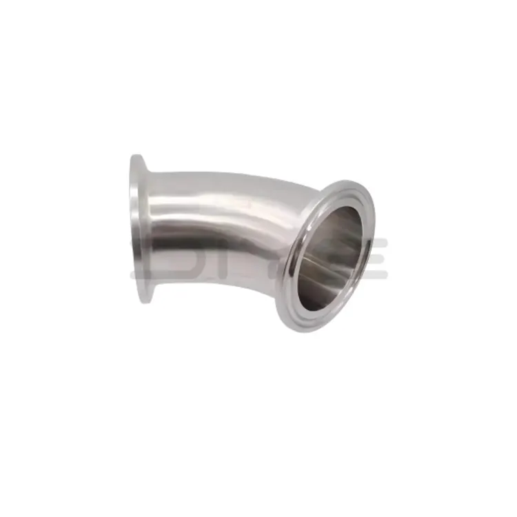 Sıhhi Paslanmaz Çelik Kelepçe 45 Derece Dirsek, titizlikle seçilmiş 304/316L paslanmaz çelik kullanır, kalitesiz geri dönüştürülmüş malzemeleri ortadan kaldırır ve ürün stabilitesini ve kaynaktan hijyeni sağlar.